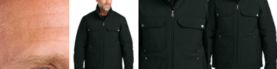 - Dual closure, four-snap placket and heavy-duty zipper with easy grab pull